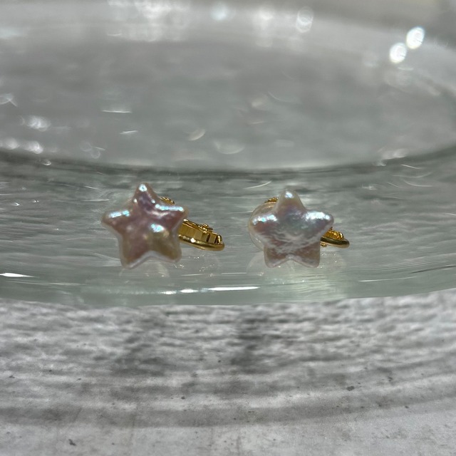 〈販売月目安:未定、2月POPUP販売あり〉 大人気の本物真珠ハート形に続き、星が新しく仲間に加わりました。 さらに難易度の高い形ですが、本物真珠にしか出せない輝きでポップなモチーフも大人可愛くご着用いただけます。 ▼星パール(真珠)について 母貝の力で⭐︎形の核に真珠層が巻かれ、⭐︎形が出来るため形は後から人工で加工が出来ません。 形が複雑なので星パールが出来上がることはごく少数なことお分かりいただけるかと思います。 選ばれし星パールが形成される中で、いわゆる完璧な星の形ではございません。表面に波打ち、凹み、膨らみなどがございますが、自然に形成させる形です。それを個性、可愛さとして受け入れてくださる方へお届けさせてください。 ▼金具の位置 出来るだけパールの上の位置に設置しております。 耳たぶから少し出るくらいの方が多いかと思います。 ハートより小さめの小ぶりです。大きさ比較の画像も掲載しておりますので、ご確認くださませ。 ▼パール大きさ 縦横約8-9mm ▼パールの形 天然が生み出すぷっくり加減ですので、写真通りのパールではないことをご了承くださいませ。どれも形が可愛いものをご用意しております。 ▼金具の種類 ピアスとネジバネ式イヤリングのゴールド色でご用意しております。シルバー色へ変更可能ですので、ご希望の方は備考欄へご記入くださいませ。 ▼その他詳細 パール:淡水パール(天然色) ピアスポスト:14kgf ⇨シルバー色へ変更:シルバー925ロジウムメッキ イヤリング金具:真鍮金メッキ(ニッケルフリー、シリコンカバー付き) ⇨シルバー色へ変更:真鍮銀メッキ(同上) 重さ片方:約2g ▼発送期間 販売期間:1/23(金)18時-25(日) 発送期間:2/9(月)-10(火) ※ お急ぎの方はご購入前にご相談くださいませ。 ▼梱包について ソフトアクセサリーケースに入れてお届けします。1〜2商品ごとに1つお付けしています。 お渡し用袋は無料でお付けできますので、ご希望の方は備考欄へご記入ください。有償のギフトボックスをご希望の方は併せてもご購入くださいませ。 ▼素材について https://kanew.shopselect.net/p/00004 ◇ 天然石・パールは自然の中で形成されるものの為、 写真には写らない小さな傷・小さな黒点・くぼみ・皺・色むらがある場合がございます。 ※ご購入いただく前に下記のURLページを必ずご確認ください。ご了承いただいてから、ご購入いただきますようお願いいたします。 https://kanew.shopselect.net/items/57957658