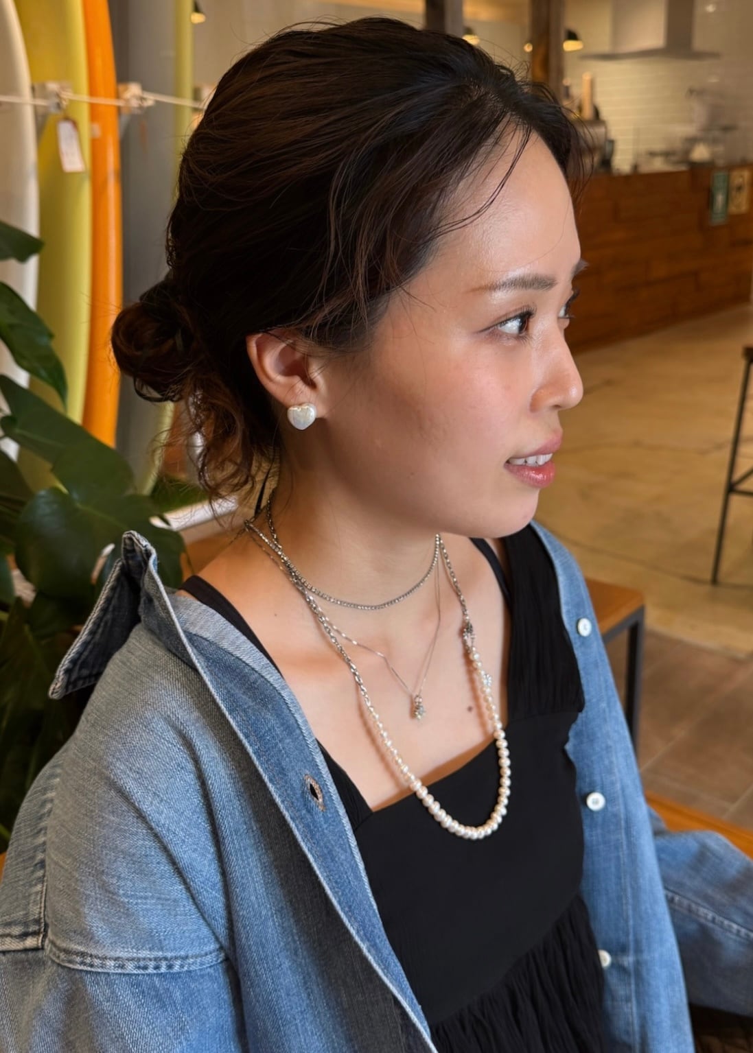 耳元でハートがこぼれ落ちるように、フェミニンさを少し抑えることができ、より大人の可愛くなるようデザインしております。