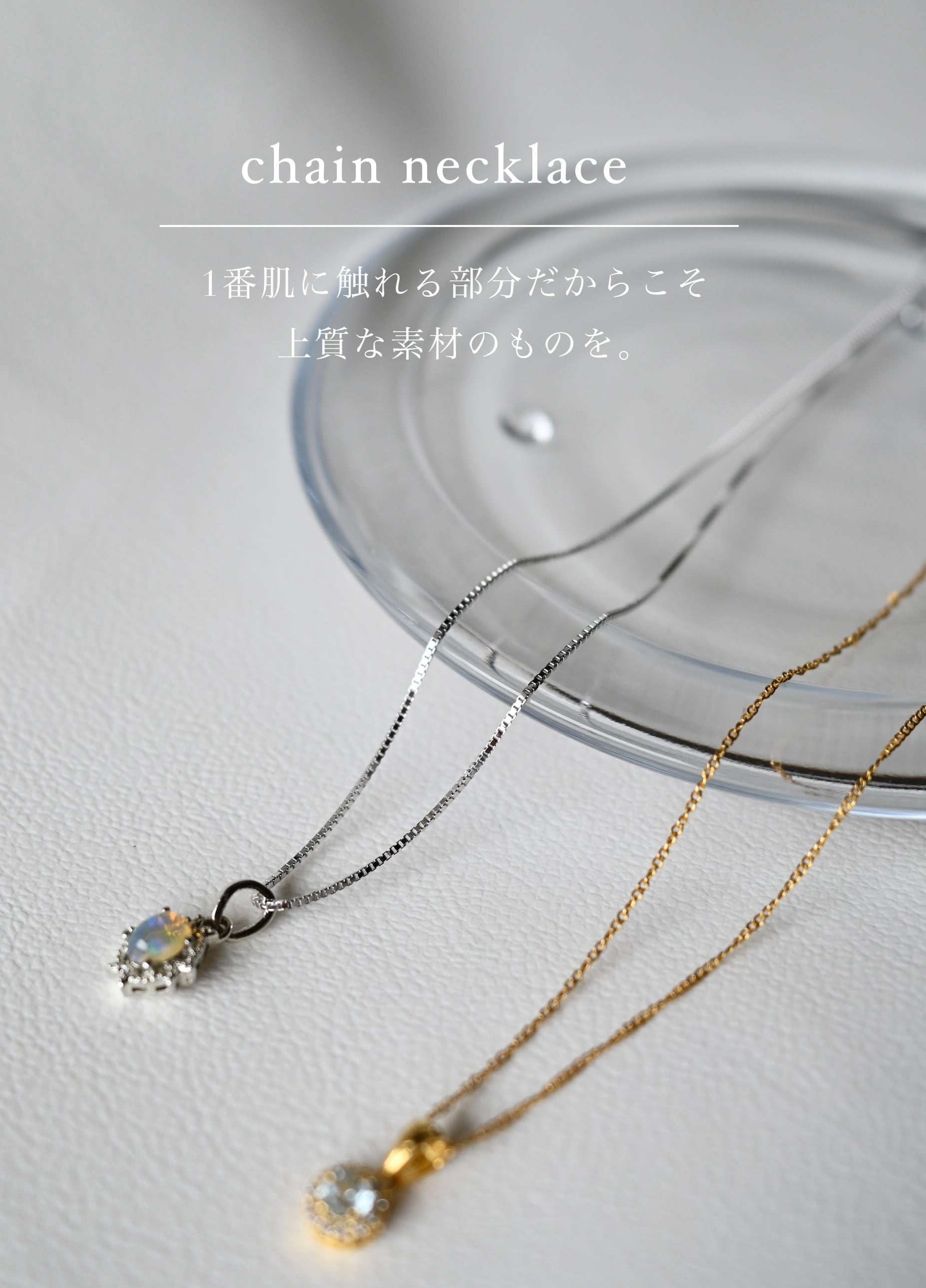 特別目立つところではないチェーンネックレスですが、1番お肌に近く劣化が早いのがこの部分です。だからこそお手入れしやすく上質な素材でご用意しております。