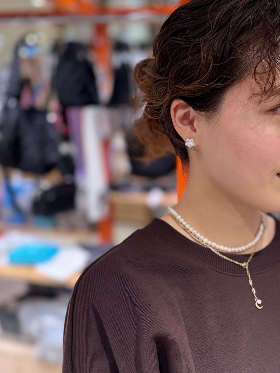 POPUPでもご好評いただいているため、しばらくの期間定番でホワイトパールにシルバー・ゴールド色チェーンでお出しすることにしました。