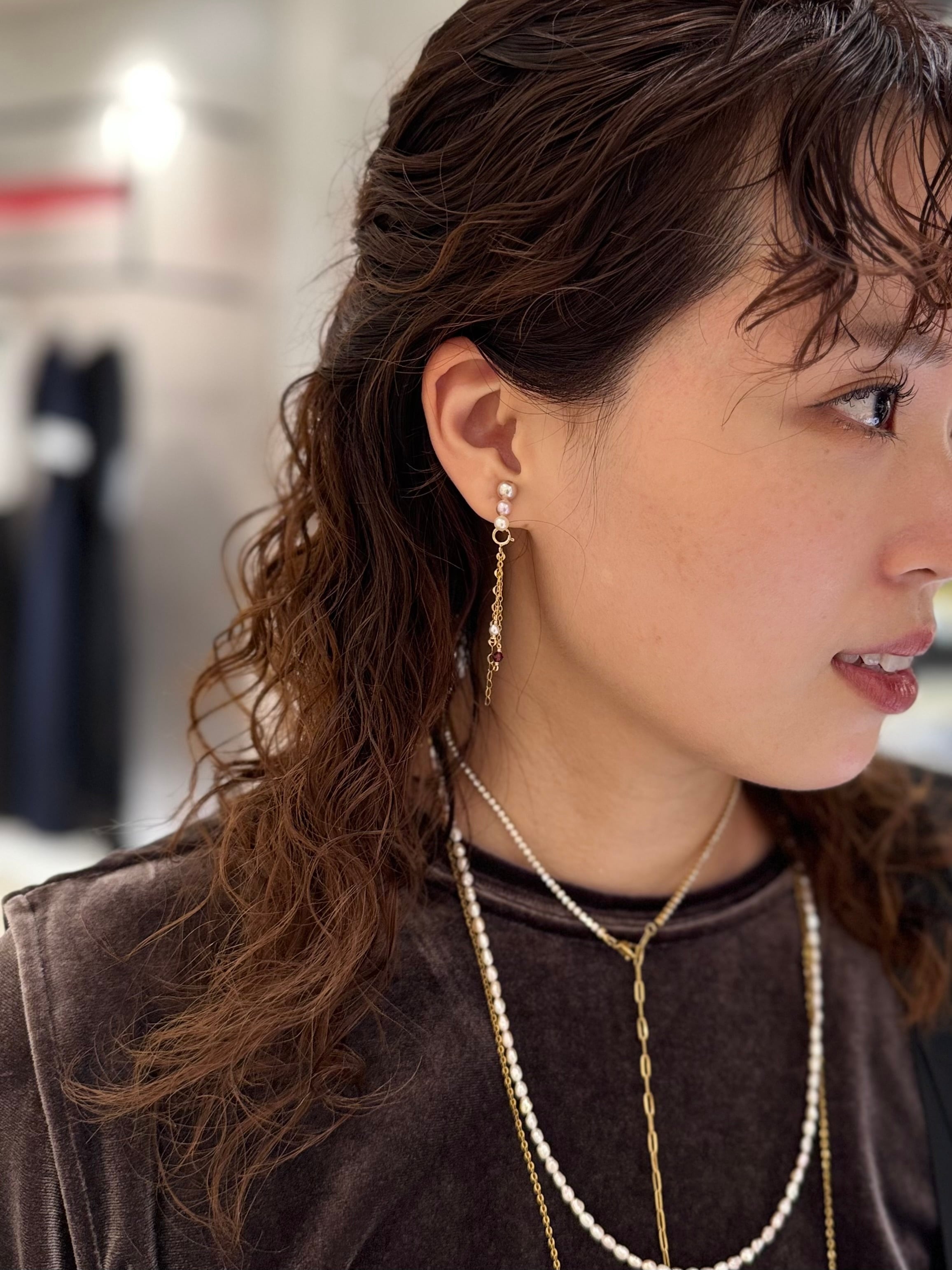 ピアス用と同じ長さでお作りしているので、見え方はイヤリング用の方が少し長く感じるかと思います。