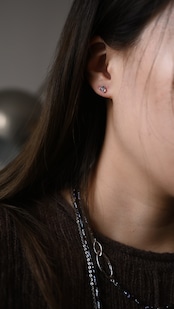 耳たぶにちょこんと可愛らしい5mmほどのミニサイズです。サイズ感は着用画と下記のサイズ表をご参考にしてくださいね。